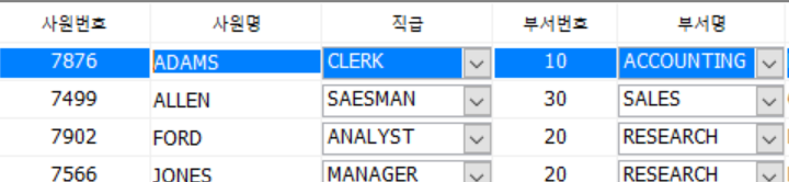 파워빌더 강의를 따라가던 중 사소한 문제를 발견했다. 내 프로그램은 선택된 로우의 사원명이 하이라이트 되고, 직급, 부서명 콜론의 텍스트가 안 보인다. 위 사진이 강좌에 있는 프로그램의 모습이고, 아래 사진이 내 프로그램이다.