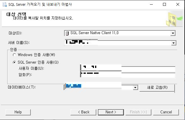 데이터베이스 우클릭 > 태스크 > 데이터 가져오기