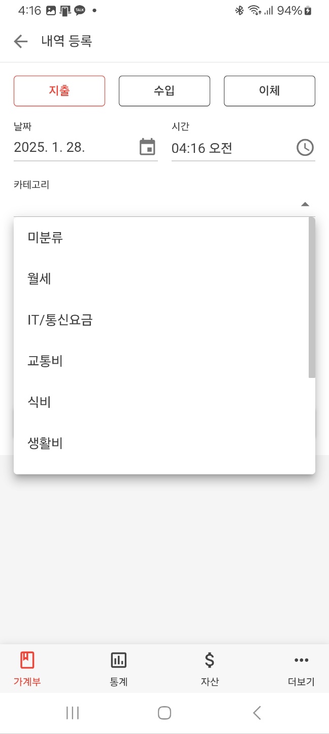 나중에는 내역 등록 시 자산을 선택하는 기능도 추가할 예정이다.