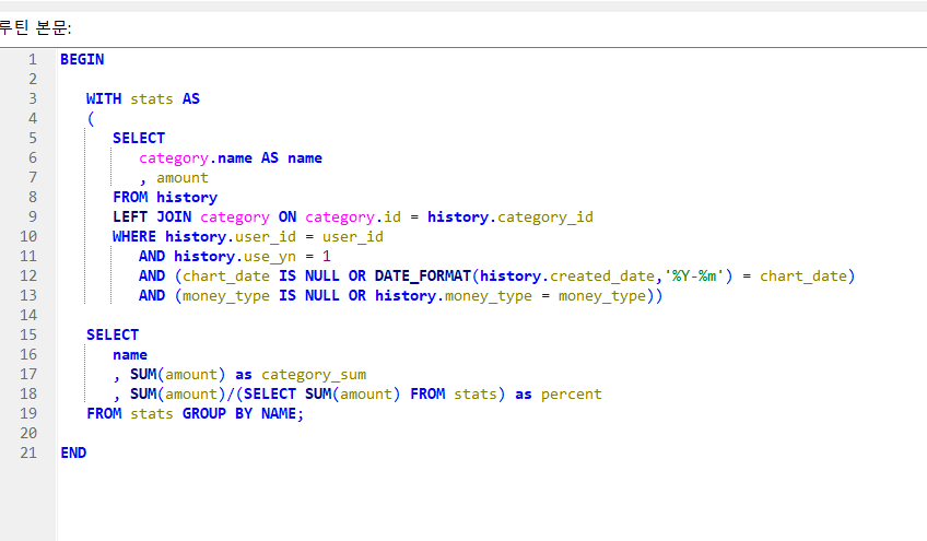 프로시저로 전환하면 강조컬러가 표시되는 데이터베이스 툴에서 작업하므로 가독성 있다. 그리고 쿼리를 수정할 때 서버를 내릴 필요가 없고 바로 데이터베이스에 접속해서 수정하면 된다.