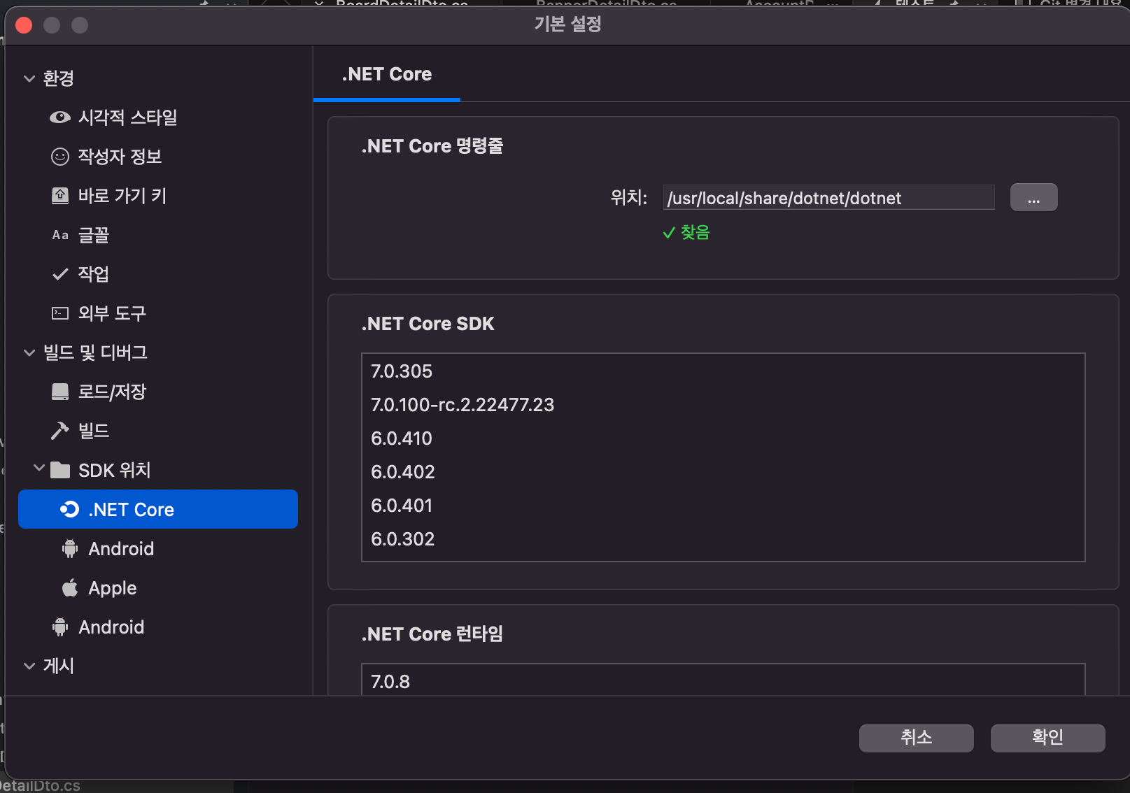 최신 sdk dotent 7을 다운받아서 7.0.305 가 설치되어있는데도 자꾸 없다고 한다.